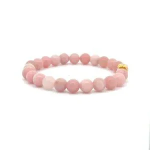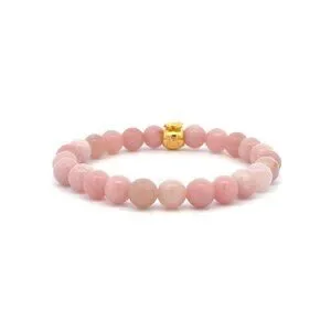 18K Gold Money Bag Lucky Charm Bracelet Gemstones Natural Pink Opal 6mm