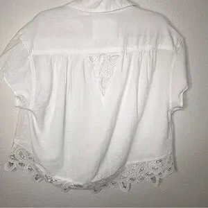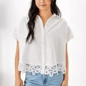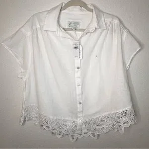 NWT American Eagle Outfitters Short Sleeve White Linen Oversized Crop Shirt Sz M