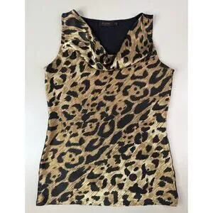 The Limited Womens Leopard Cowl Neck Sleeveless Top S Cheetah Animal Print Y2K