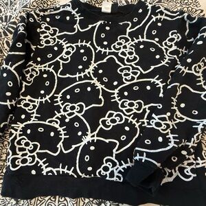 Cozy black and white Hello Kitty sweater. Features a playful pattern.