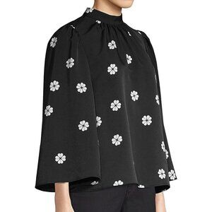 Kate Spade Blouse Womens Black Mock Neck Floral Puff Bell Sleeve Crepe Top