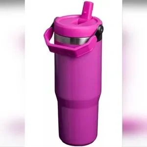 Stanley 30 oz. Iceflow Flip Straw water bottle / tumbler. Limited edition 'Punch Shimmer' color from the Winter Wonderland collection - exclusive drop. Gorgeous glitter, deep fuschia pink color. 100% leak proof. Has a convenient carry handle. Cupholder friendly. Brand new. I took the tags off thinking I was going to use it, but I have too many tumblers! You can find tons of matching accessories for it.