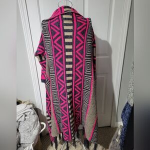 David & Dani Geometric Patterned Open front Boho Cardigan
