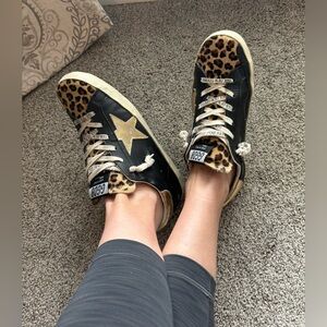 Golden Goose Black/Leopard/Gold Calf Hair Super-Star Private/Edt- Size 39 (9)