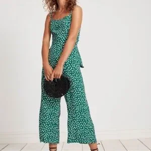Faithful the Brand Playa Green Floral Print Jumpsuit Playsuit