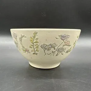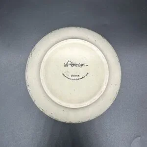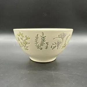 This In Homestylez cereal bowl is a beautiful addition to your kitchen. Featuring a lovely Spring Pressed Garden flower pattern, this stoneware bowl is perfect for your morning cereal or soup. The floral design is impressed into the bowl, adding a unique touch to your dining experience. Manufactured in 2020. Whether you are looking to add to your pottery and glass collection or simply want a charming bowl for your everyday meals, this In Homestylez cereal bowl is an ideal choice. There are no chips, cracks, or crazing.