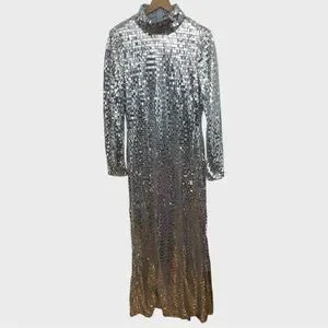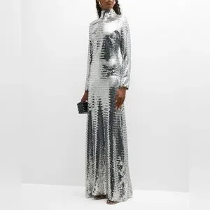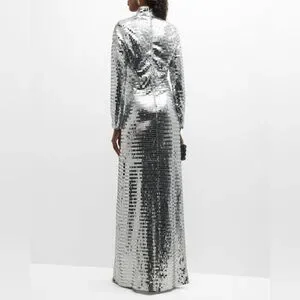 Simon Miller Silver Sequin Sculpty High Collar Maxi Dress Size 12