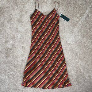Ralph by Ralph Lauren Slip Dress Womens 6 Green Striped Vintage Midi Bias NWT
