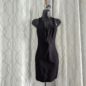 This elegant black mini dress is perfect for any occasion. Its sleek design offers a flattering fit, making it a versatile addition to your wardrobe. There is support on either side of the plunge neckline (see photos) and this small is SMALL fits the mannequin perfectly.