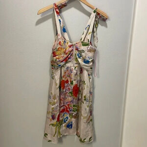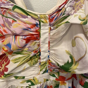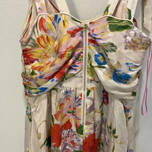 Leifsdottir woman’s silk flowered dress. This dress is gorgeous and the detail is amazing. It has a half zip in the front of the dress. The dress is a size 2.
