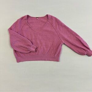 Free People | Found My Friend | pullover sweater | bouclé sweater | V-neck | balloon sleeve | pink sweater | purple sweater | orchid sweater | boho sweater | casual sweater | textured knit | cozy pullover | fall winter sweater | soft layers