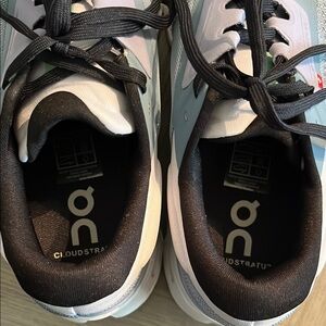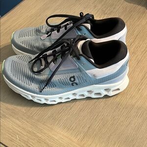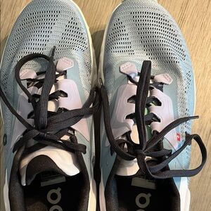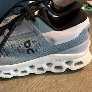Trendy sneakers with a blue mesh upper and black accents. Perfect for casual wear.
