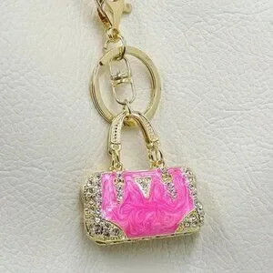 Add a touch of glam to your accessories with this stunning mini handbag keychain charm. Crafted with elegant gold-tone hardware, a pearly enamel body, and dazzling rhinestone accents, this key ring brings sophistication to any handbag, backpack, or set of keys. The secure clasp and split ring make it easy to attach and remove wherever you want a pop of sparkle. Whether you're gifting it or keeping it for yourself, this little charm makes a big statement of style.