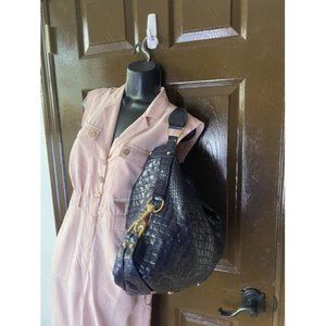 Rebecca Minkoff Croc Embossed Black Leather Shoulder Bag