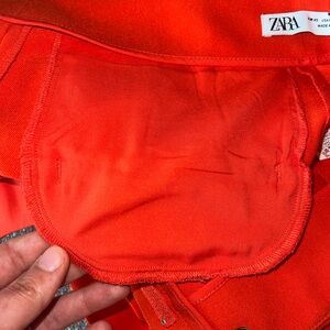 NWOT Womens Zara Red Orange High Rise Pleated Pockets Zip Fly Shorts