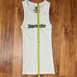 Authentic Jägermeister branded tank top with branding on front and logo on back.