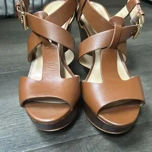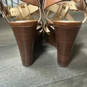 EUC Michael Kors brown leather wedges size 7