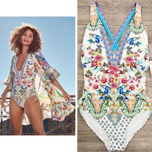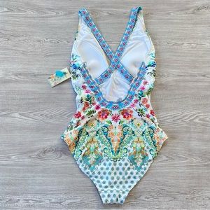 NWT Johnny Was Dreamer V-Neck One-Piece Swimsuit Size XL