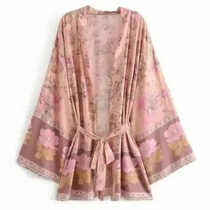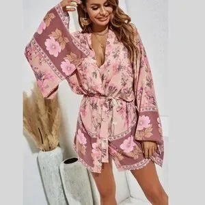 Bohemian Dahlia Floral Print Kimono Mini Dress