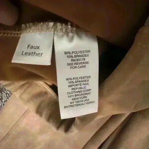 These Tahari leggings feature a luxurious faux suede finish in a versatile camel color, crafted from 90% polyester and 10% spandex for a comfortable stretch and a flattering fit. Designed in a women’s size small, these leggings offer a stylish and comfortable option for both casual and dressy occasions. The faux leather look adds sophistication to any outfit, making these leggings a chic and versatile addition to your wardrobe. Perfect for pairing with your favorite tops and sweaters, they bring a touch of elegance to everyday style.