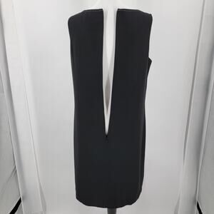Mary McFadden Dress Womens 12 Black Sheath Lined White Stitch Neckline