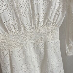 Elegant long sleeve dress. Features delicate eyelet design. Perfect for any occasion.