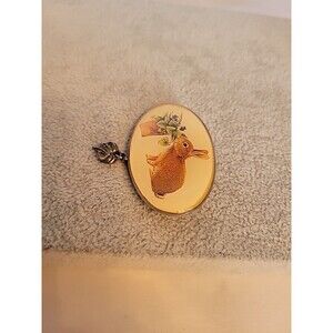 Vtg 1999 Marjolein Bastin Oval Rabbit Bunny Pewter Pin Brooch Leaf Charm Signed