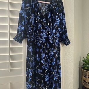 This elegant blue floral dress is perfect for any occasion. The vibrant blue pattern adds a touch of sophistication to your wardrobe.