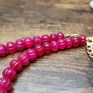 This stunning red beaded necklace adds a touch of elegance to any outfit. Perfect for any occasion.