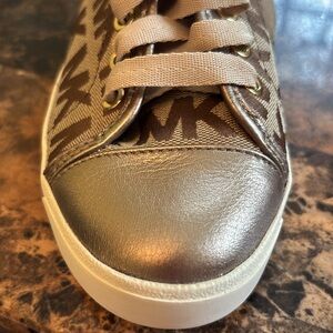 Brown and Gold Logo Sneakers Michael Kors. NEW