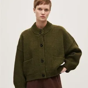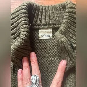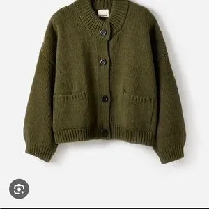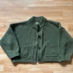 100% wool cardigan from Babaa in the color Alga. Lightly worn and ready to be loved. Cute front square pockets with a cropped fit. So warm and perfect for this upcoming fall/winter.