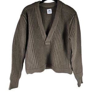 H&M Studio 100% Wool Chunky Knit Cropped Olive Green Sweater in XS