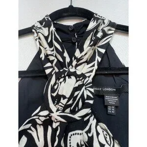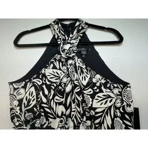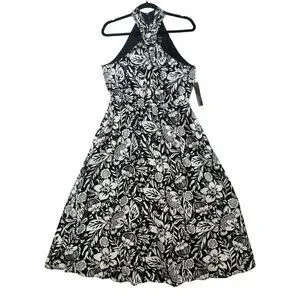 Maggy London Womens Buckle Halter Midi Dress Size 12 Black Floral Couture NWT