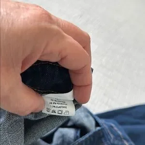 Cotton blend denim overalls with adjustable straps. With tag, never worn. Measurements: 31 inches in the waist and 41.5 in the hips.