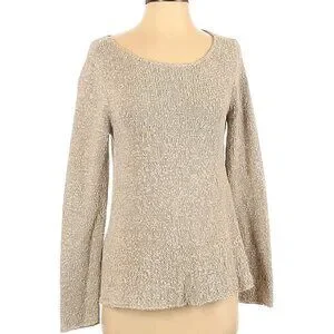 Eileen Fisher Long Sleeve Beige Knit Sweater in XS