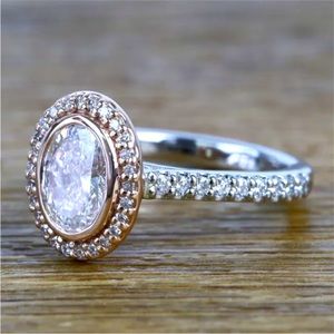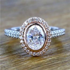 NEW Two-Tone 14k RoseGold/Sterling Silver Sim. Diamonds Ring