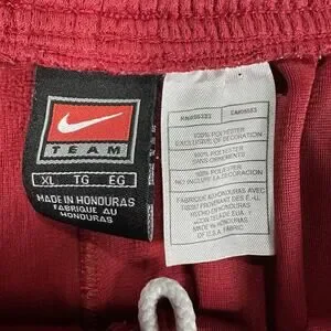Elevate your game day attire with the vintage Nike Team Indiana Hoosiers Basketball Shorts. A true homage to college basketball nostalgia, these red shorts are designed for the dedicated fan who wants to represent their team in true style. The size XL ensures a comfortable fit for most, allowing you to move and cheer with ease.
