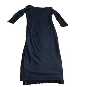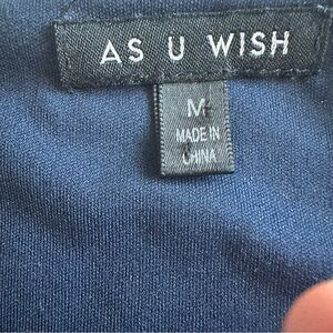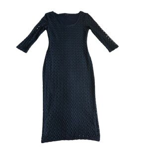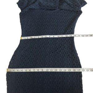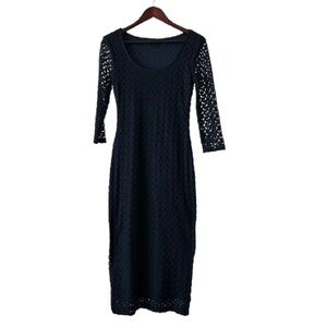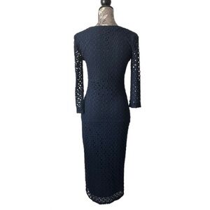 As U Wish Women's M Navy Blue Midi Pullover Sleeved Knit Bidycon Crochet Dress
