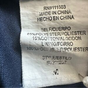 Material: outer: 85% polyester, 15% cotton; lining: 100% polyester
