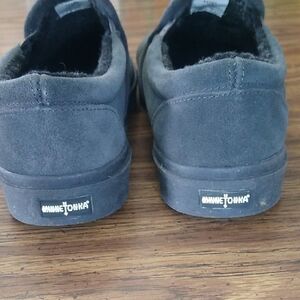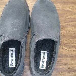 Minnetonka Mens Gray Suede Slip-On Loafers with Elasticized Opening Size 10