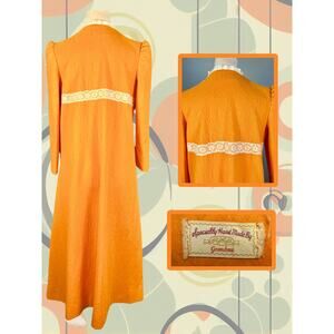 Vintage 60s Neon Orange Maxi Prairie Hippy House Coat Dress Size M