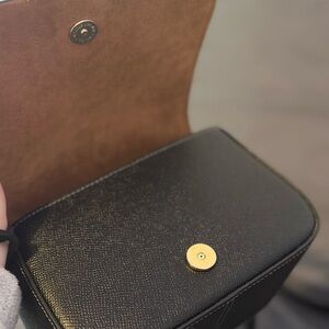 Elegant and versatile, this Coach black leather crossbody bag is perfect for any occasion. Featuring a sleek design with gold accents, it adds a touch of sophistication to your outfit.