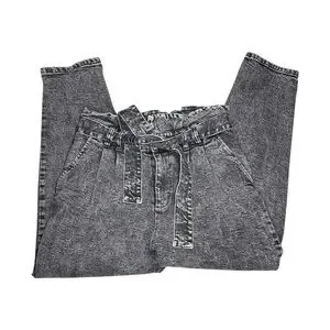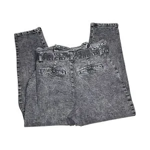 Who What Wear Black Acid Wash Belted Paper Bag High Rise Jeans Size 8