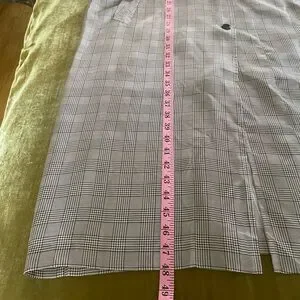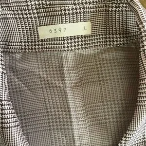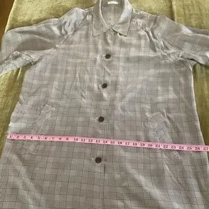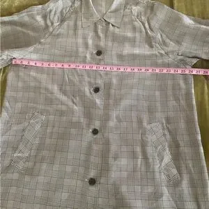 Stylish plaid coat with button-up front and pockets. Perfect for spring layering.