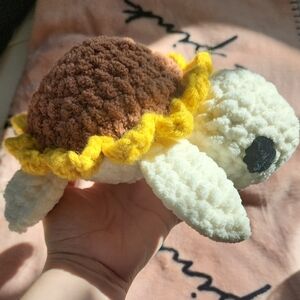 Adorable crochet plush turtle toy in cream, gold and brown. Head to back foot 10-11inch.