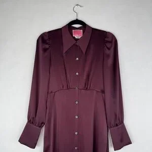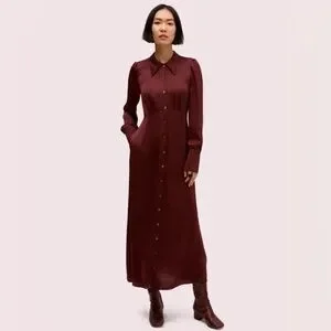 KATE SPADE COLLECTION Satin Midi Shirtdress in Candied Fig - NJMUA864 - Sz 0
