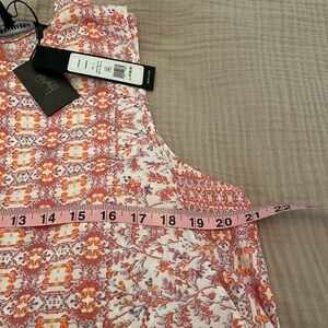 NWT BCBG floral, sleeveless, bra friendly, faux wrap blouse. Longer in back and flows over curves. 100% polyester feels like silk against the skin. Large. Very pretty 😍! Makes a great layering piece under blazers and jackets.