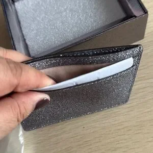 Keep your cards stylishly in check with the Kate Spade New York Small Glitter Slim Card Holder. Designed with a sleek silhouette and dazzling glitter finish, this chic accessory adds a touch of glamour to your everyday carry. Featuring multiple card slots and a compact size that fits perfectly in any handbag or pocket, it’s both fashionable and functional. Whether you're running errands or heading out for the evening, this card holder brings sparkle wherever you go.