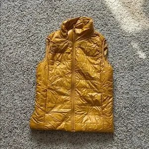 Stylish quilted puffer vest in a vibrant yellow color. Perfect for layering.
