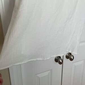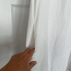 Beautiful VD Lounge dress. Flutter sleeves. Textured gauze with raw hem ruffled neck and sleeves. Single button keyhole closure at the back of the neck. Pockets!! Fully lined. Comfort and style in one dress!! Retail $168